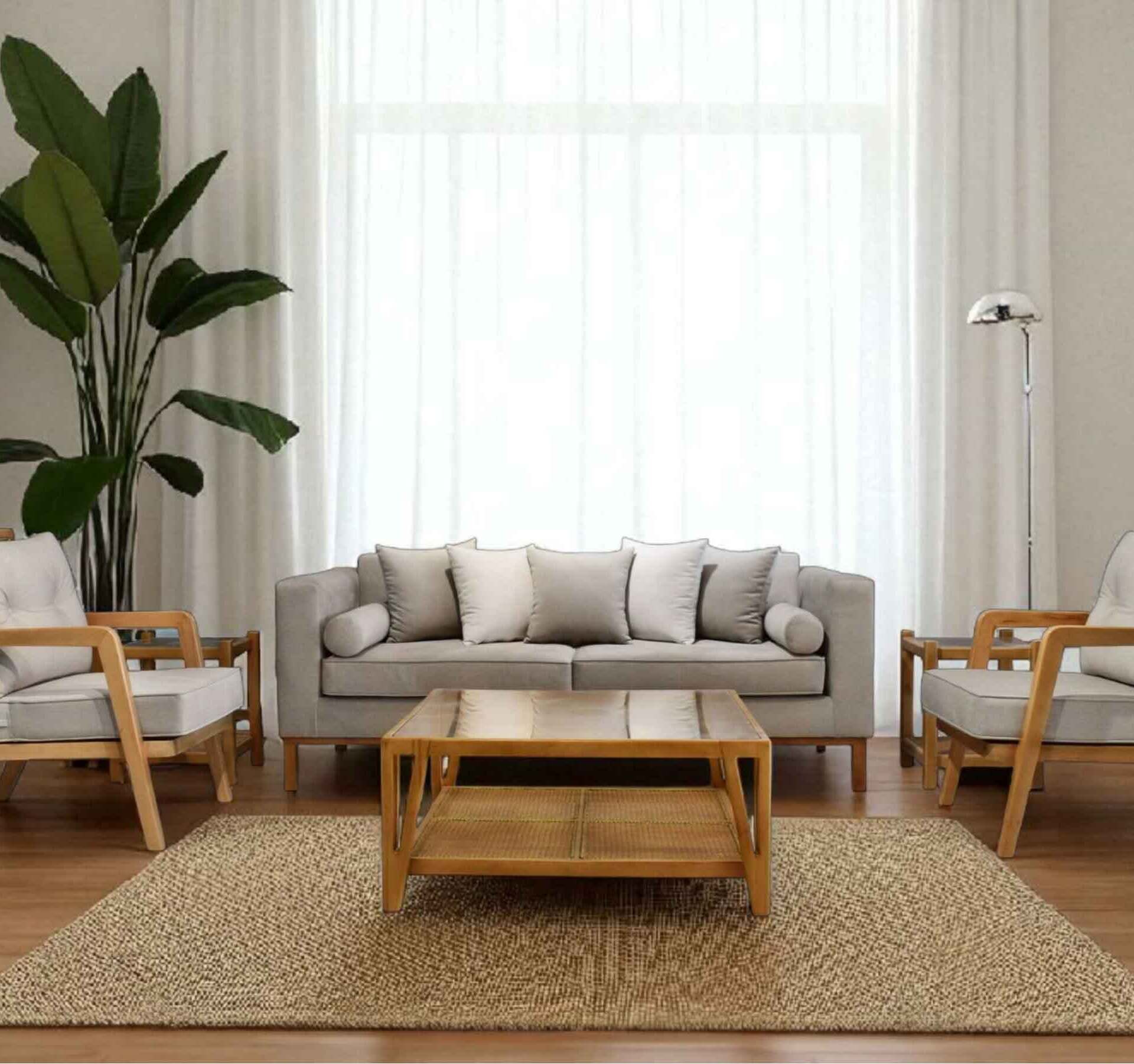 مبل ۸ نفره چوبین شامل دو کاناپه و دو صندلی تک با دستههای چوبی زیبا است که ترکیبی از اصالت و راحتی را در کنار هم قرار میدهد. یکی از کاناپهها با پشتی حصیری طراحی شده که جلوهای خاص و متفاوت ایجاد میکند و کاناپه دیگر با کوسنهای پر و نرم حس آرامش و راحتی بیشتری به فضا میبخشد. لمسهکاری ظریف روی برخی پشتیها نیز جلوهای لوکس و چشمنواز به این ست میدهد. این مجموعه انتخابی ایدهآل برای کسانی است که به دنبال مبلی شیک، راحت و ماندگار برای نشیمن خود هستند.