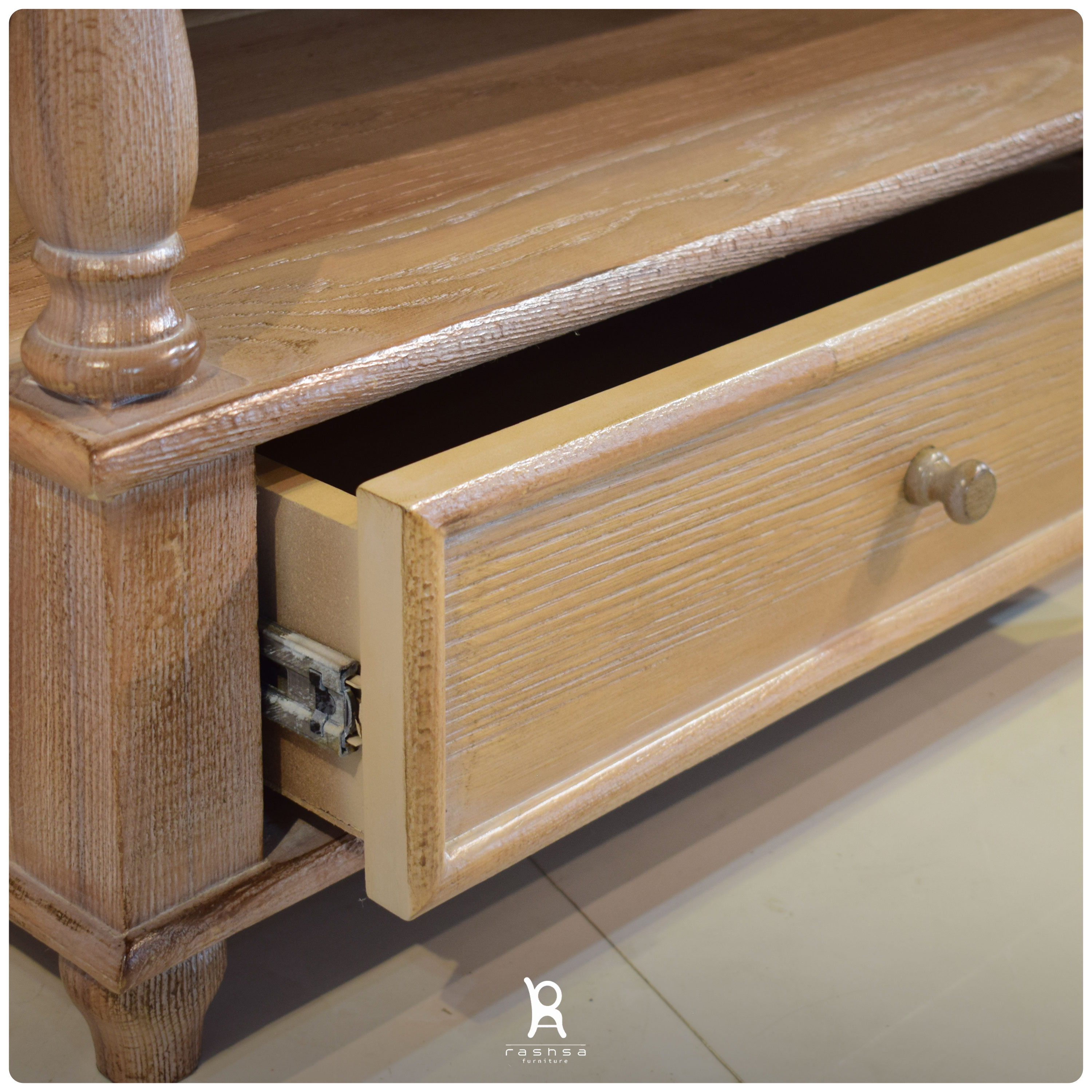 • دارای سه کشوی کاربردی در قسمت پایین برای نگهداری وسایل جانبی، کابل‌ها و اقلام روزمره، با دستگیره‌های مینیمال و ظریف؛