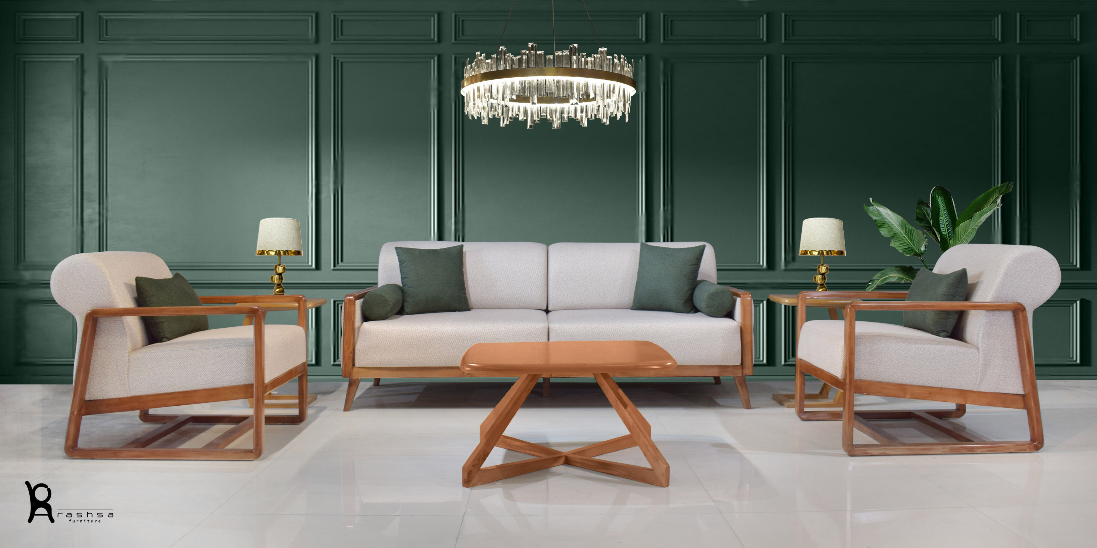 اسکلت‌بندی مقاوم چوبی با نمایی ظریف و استفاده از پارچه‌های بادوام، لطیف و قابل انتخاب توسط مشتری.