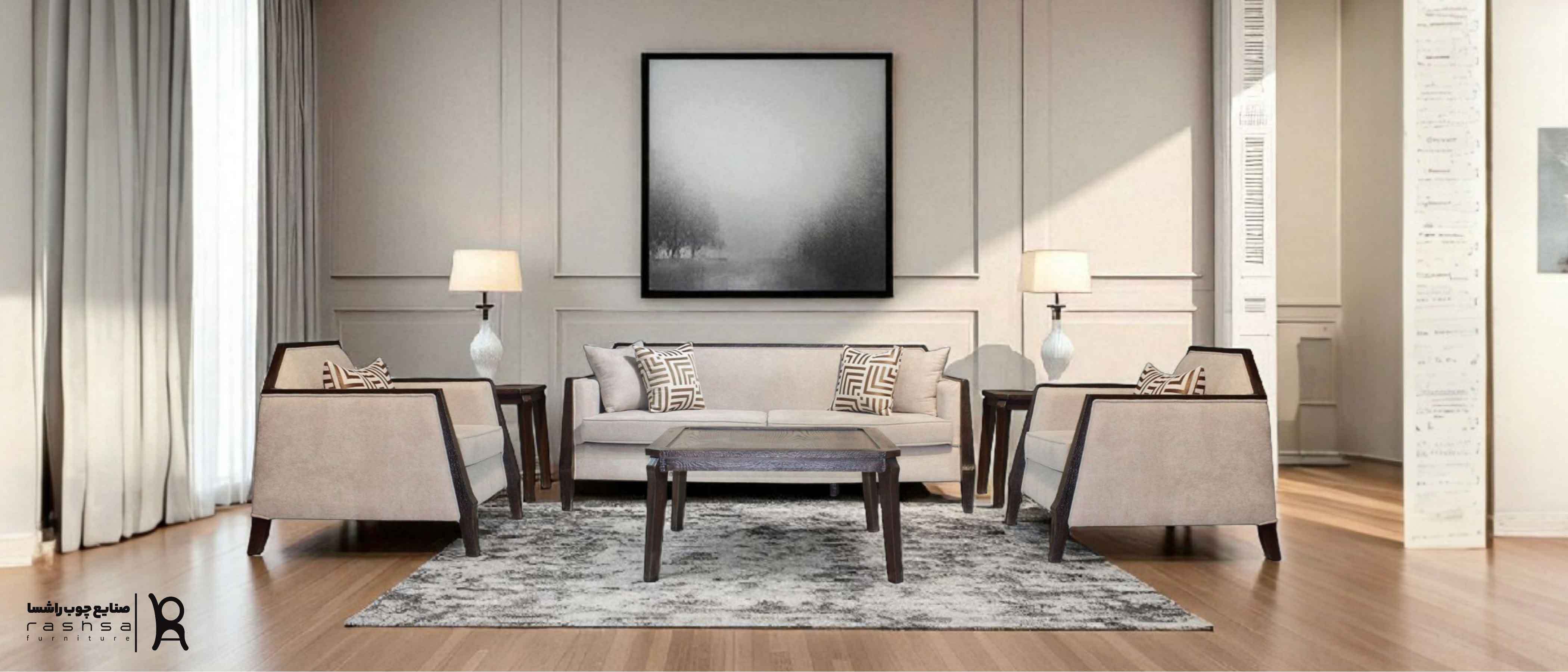 مبلمان الیزه، ترکیبی از طراحی نئوکلاسیک و ظرافتی چشمنواز است؛ مدلی که سادگی، اصالت و شکوه را در قالبی هماهنگ به نمایش میگذارد. این ست شامل ترکیب ۳+۳+۱+۱ بوده و با استفاده از چوب راش وارداتی چهار تراش ساخته شده است که استحکام و جلوهای فاخر به کار میبخشد. پارچهی استفادهشده از نوع ۳۵K ثمین اصفهان با بافتی نرم و مقاوم است که حس لطافت و دوام را همزمان منتقل میکند. سطح کار با رنگ پولیاستر براق پوشش داده شده تا درخشش و ماندگاری بیشتری داشته باشد. همچنین، این مدل دارای تنوع رنگ چوب و پارچه بوده و با وجود نداشتن قابلیتهای افزوده، بهواسطهی طراحی متناسب و ساخت دقیق، انتخابی ممتاز برای دکوراسیونهای نئوکلاسیک و لوکس محسوب میشود.